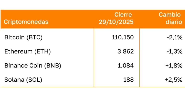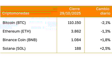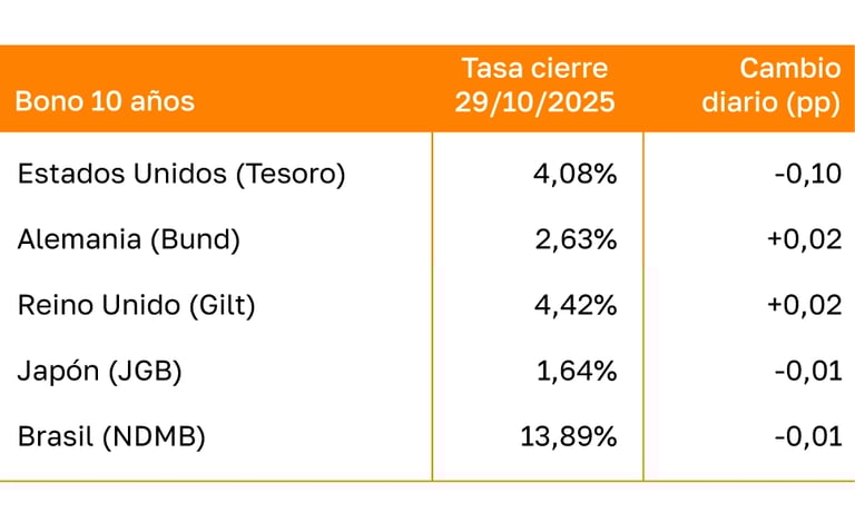 La inflación subyacente (que excluye energía y alimentos) permaneció en el 2,4%, evidenciando que no todos los precios bajaron por igual. La presidenta del BCE, Christine Lagarde, anunció que no habría cambios en los tipos de interés, al cierre del mes de octubre, cortando un ciclo de 10 meses consecutivos de recortes.